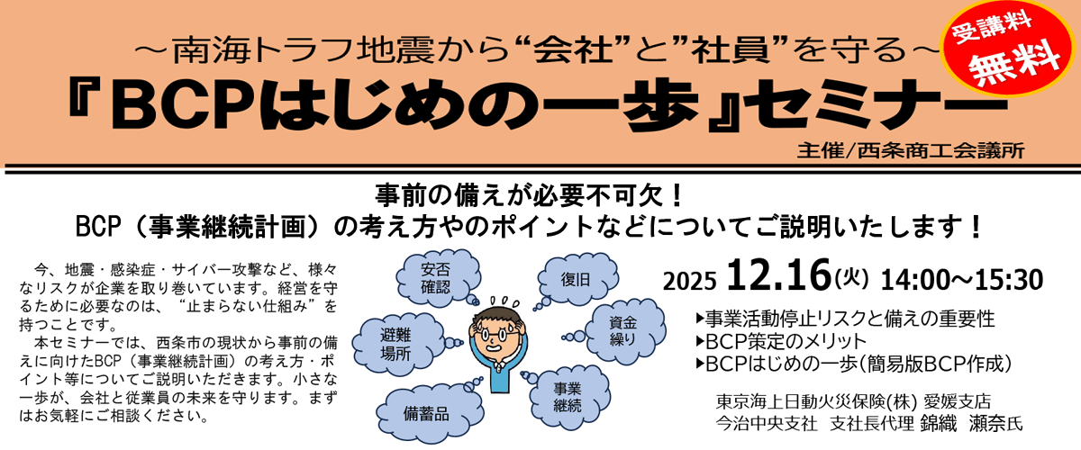 【制度改正等の課題解決環境整備事業】『BCPはじめの一歩』セミナーのご案内